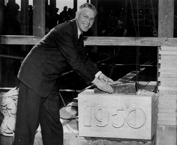 The cornerstone ceremony was 28-Sep-1950. Gardner Cullinan, mayor,